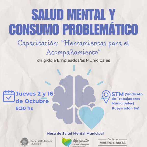 A través de sus redes sociales, la secretaria de Géneros, Políticas Sociales y Derechos Humanos de la Municipalidad de General Rodríguez, Mariana Galván, hizo extensiva la invitación a todos los empleados y empleadas municipales para formar parte de la capacitación "Herramientas para el acompañamiento" en torno a la Salud Mental y el Consumo Problemático.