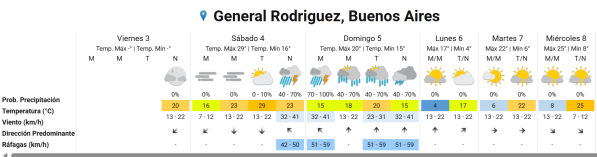 De acuerdo a los pronósticos extendidos, tras el pasaje de este sistema de mal tiempo se espera una mejora gradual a partir del domingo por la tarde, con disminución de la intensidad de las lluvias y una leve baja en la temperatura. El comienzo de la próxima semana se presentaría con condiciones más estables, aunque con ambiente fresco y cielo parcialmente nublado.