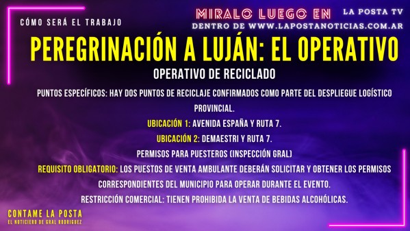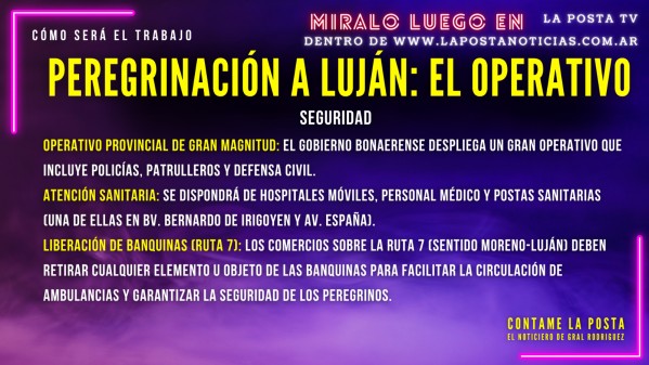 Con una expectativa de dos millones de peregrinos atravesando el distrito, la secretaria de Educación, Deportes, Cultura y Juventudes Claudia Guerra, detalló en una entrevista por "Contame La Posta" las múltiples áreas involucradas, los desvíos, la prohibición de venta de alcohol y las medidas para garantizar el orden en una de las manifestaciones de fe más grandes de Argentina