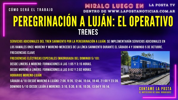 Cabe destacar también, que Trenes Argentinos dispuso de servicios adicionales del Tren Sarmiento por la peregrinación, en los ramales Once-Moreno y Moreno-Mercedes durante este sábado y domingo.