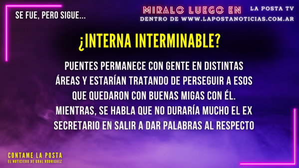 Mientras tanto, se especula sobre los próximos pasos del propio Puentes, quien, según ciertas fuentes políticas, no habría dicho sus últimas palabras al respecto aún. Se comenta que estaría muy afectado por la forma en que se manejó su salida, sintiendo que el "castigo" fue excesivo, injusto y exagerado. Se le adjudica la sensación de que desde la propia interna se favoreció y fogoneó un ataque desmedido en su contra, percibiendo que los golpes más duros provinieron "más de adentro que de afuera".