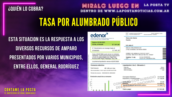 Históricamente, los vecinos de General Rodríguez abonaban la tasa de alumbrado público directamente en su boleta de Edenor (y algunos por doble vía si no reclamaban). Sin embargo, a raíz de una disposición a nivel provincial, se estableció que este concepto debía ser cobrado por los municipios de forma independiente, desvinculándolo de la factura eléctrica. Esto se debe a que, como se ha explicado en reiteradas ocasiones, lo que se abona con esta tasa no es la luz particular de la puerta de cada casa, sino el servicio de alumbrado general del distrito.