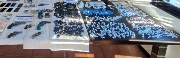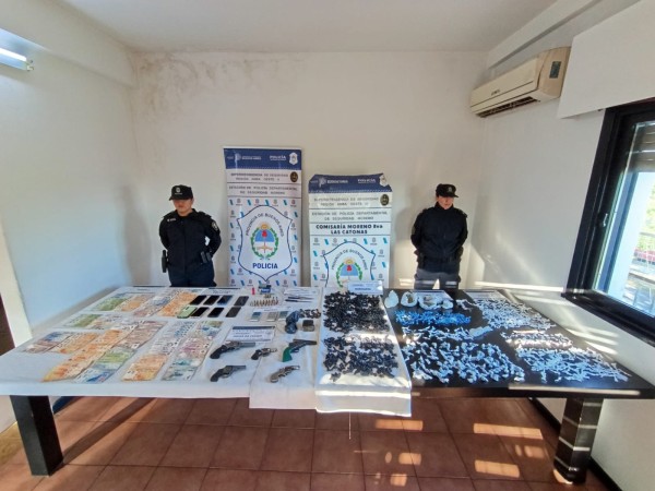 Durante los allanamientos se secuestraron más de 760 envoltorios de droga, medio kilo de cocaína, 400 envoltorios de marihuana y compactos que suman cerca de 300 gramos. También incautaron balanzas de precisión, aproximadamente 250 mil pesos en efectivo, celulares y cinco armas de fuego.