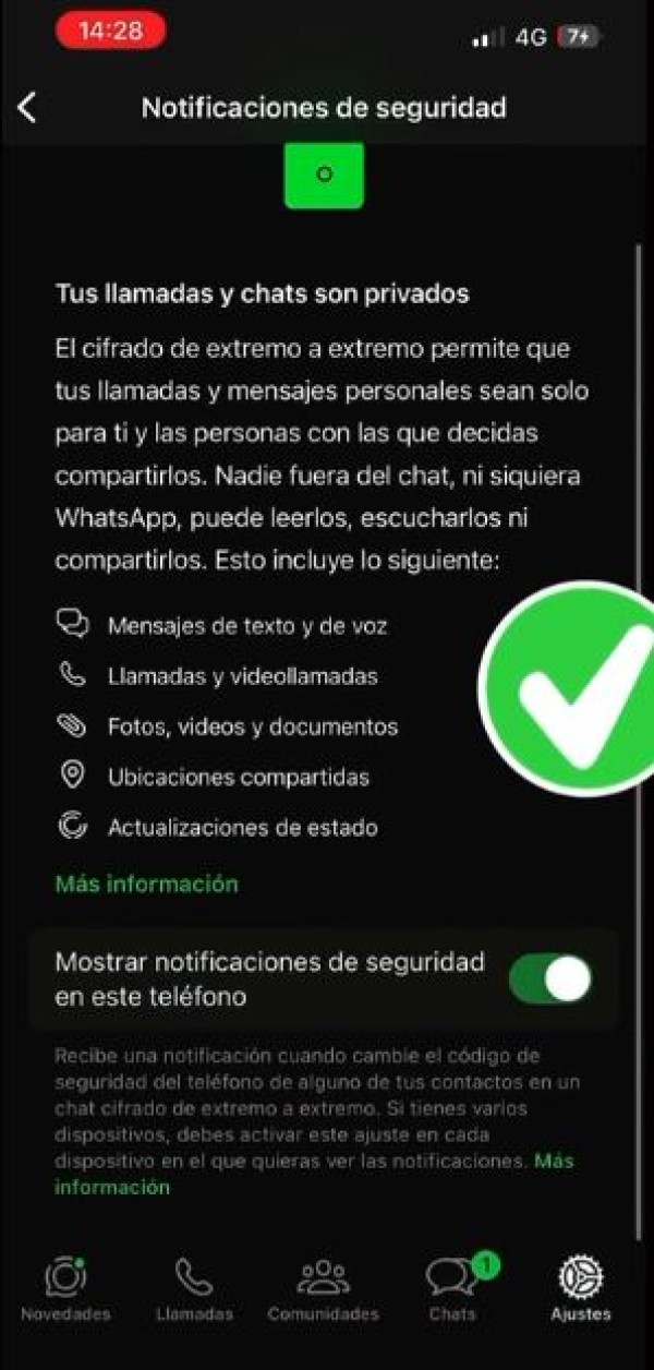 La activación de esta función de alerta es crítica porque, "de esta forma, si alguien intenta acceder a tus mensajes, llamadas, o archivos vas a recibir una alerta".