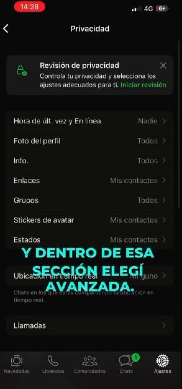 3. Opciones Avanzadas: dentro de "Privacidad," se debe elegir la opción "Avanzada".