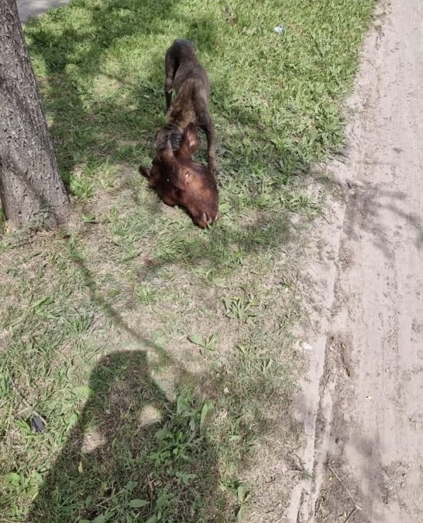 Fernanda, una residente del barrio Villa Vengochea, se encontró con una escena inusual y macabra en el cruce de Salta y Avenida Balbín este jueves temprano por la mañana, a la vuelta de su casa: lo que inicialmente pareció ser un animal atropellado resultó ser la cabeza "perfectamente seccionada" de un ternero, abandonada a metros de una parada de colectivos y siendo devorada por un perro