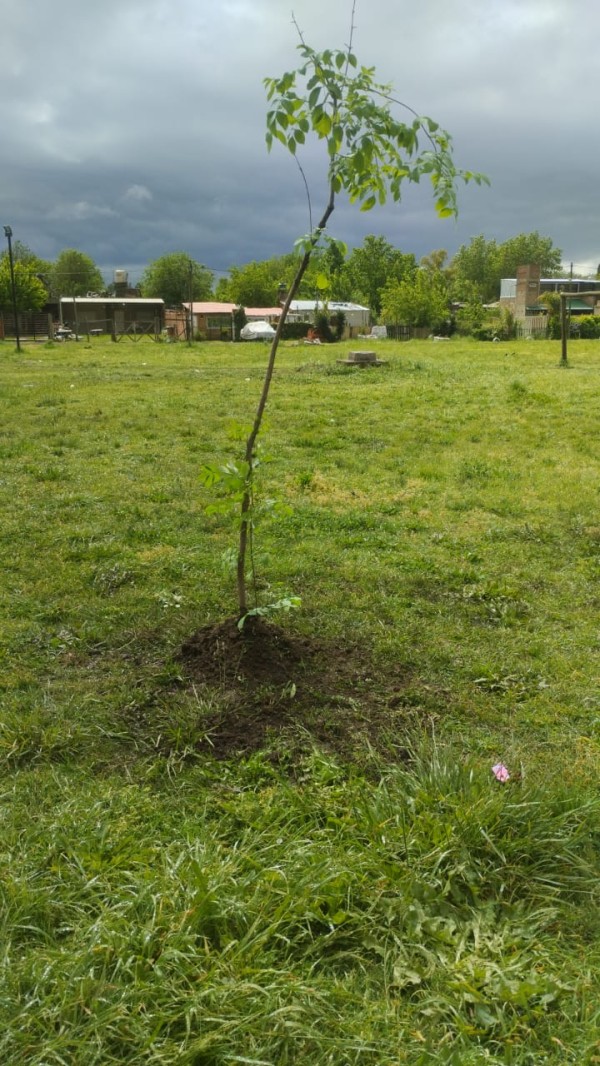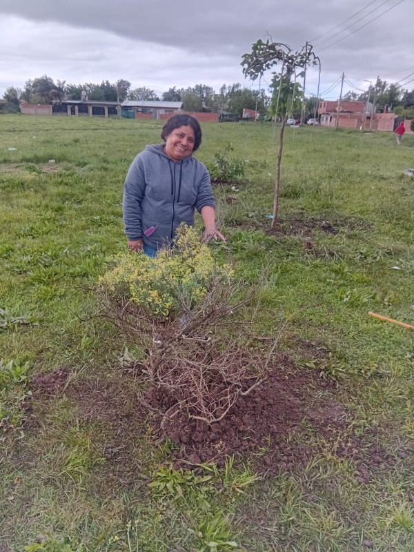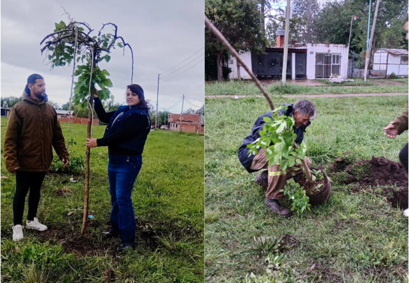 Vecinos sin fronteras ambientales: dos barrios rodriguenses se unieron para forestar sus plazas