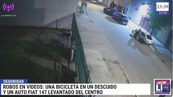 Dos hechos delictivos que fueron retratados en el último programa de "Contame La Posta". Por un lado, un Fiat 147 robado en pleno centro con un "auto de apoyo", y por el otro el "hurto relámpago" de una bicicleta en Ruta 7