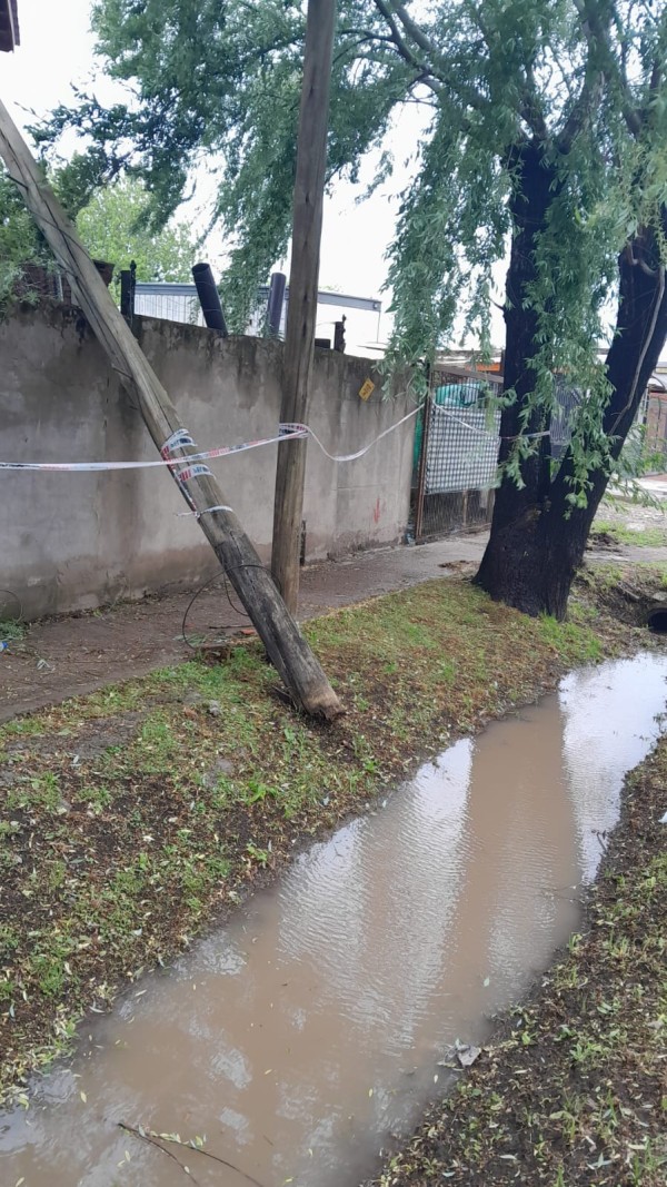 Árboles y postes de energía caídos y calles inundadas tras las lluvias en General Rodríguez