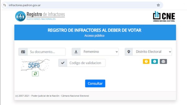 Un caso similar ocurrió tras las elecciones de 2023, cuanto la CNE denunció una web falsa del registro de infractores. Los engaños se respaldan en el Código Electoral Nacional (Ley 19.945), que impone las multas para quienes no concurren a votar. Las multas son solo de entre 50 y 500 pesos, y quien no regularice su situación queda impedido de realizar trámites de documentación o cumplir funciones públicas.