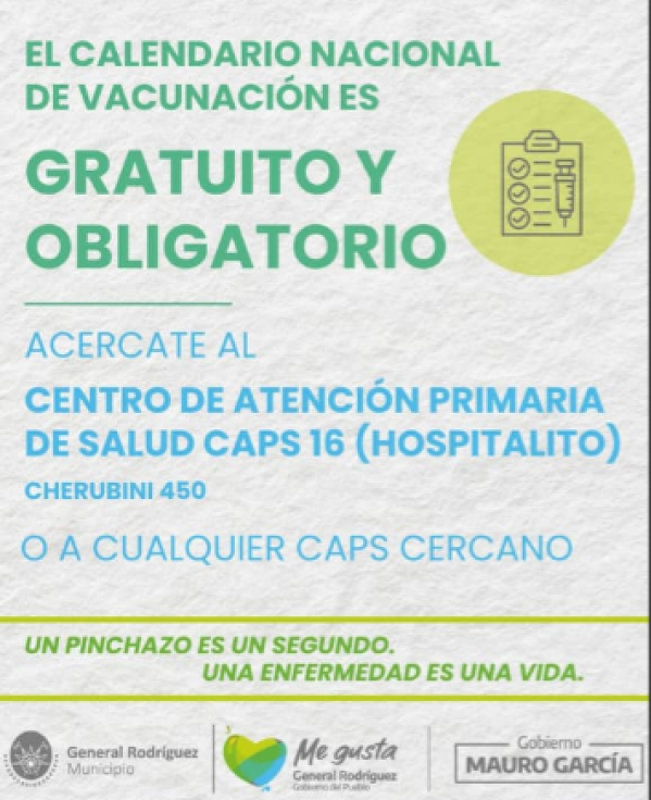Los vecinos pueden acercarse al Centro de Atención Primaria de Salud CAPS N.º 16 (Hospitalito), ubicado en Cherubini 450, o a cualquier CAPS cercano, para completar el esquema de vacunación.