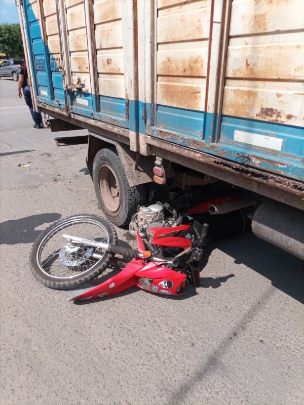 El hecho vial de este lunes tuvo como vehículos implicados a una moto y a un camión que, según trascendió, transportaría verduras. Testigos mencionaron que habría sido luego de que el rodado impactara contra el vehículo de mayor porte, el cual se encontraba en la subida al cruce de vías del ferrocarril.