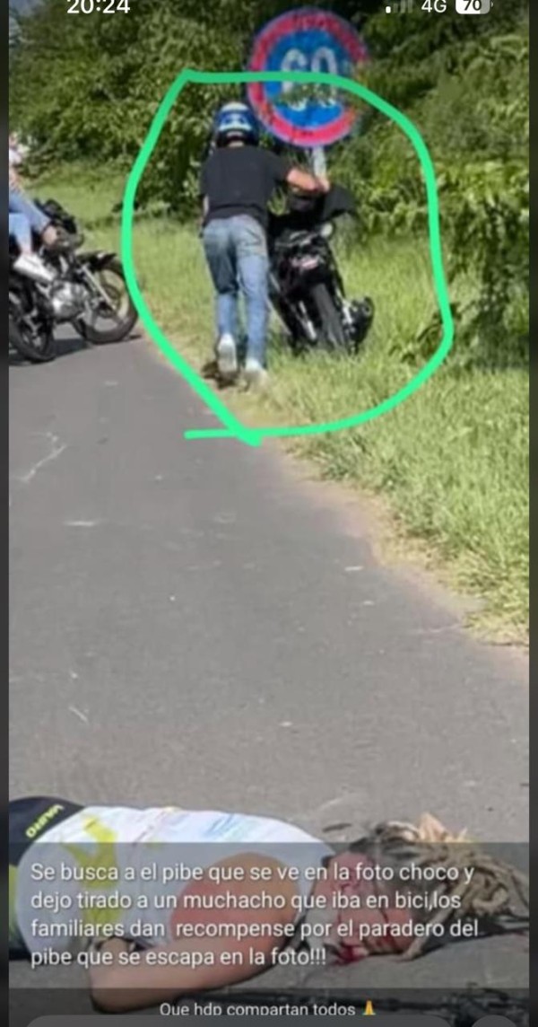 Debido a la magnitud del hecho, amigos y familiares habían iniciado en estos días una campaña, utilizando las redes sociales para buscar testigos que pudieran dar con el responsable del accidente. En el lugar, una foto comenzó a circular mostrando a una persona de espaldas, con un casco, junto a una moto grande, señalando al motociclista que supuestamente huyó después del incidente.