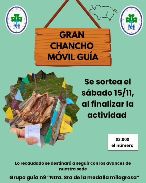 Este sábado 15 de noviembre a partir de las 9 hs, la agrupación Medalla Milagrosa estará paseando el Chancho Móvil Guía por las calles rodriguenses con la intención de juntar fondos para continuar con la construcción de la sede. El valor de cada número es de 3 mil pesos