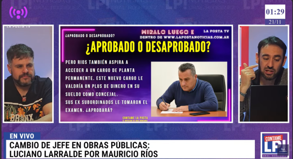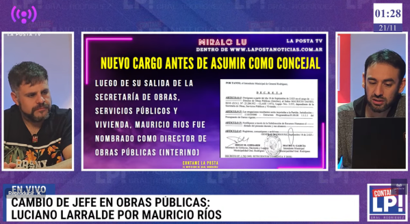 La salida de Ríos abrió otro movimiento dentro del Gabinete: Luciano Larralde, quien hasta ahora se desempeñaba como jefe de Gabinete municipal, pasó a ocupar el lugar vacante en la Secretaría de Obras, Servicios Públicos y Vivienda.