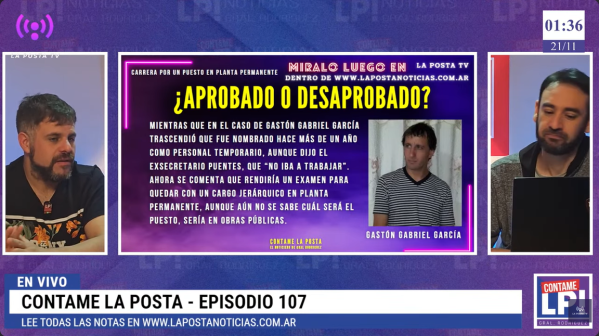 Según trascendidos, Gastón Gabriel García, hermano del intendente, quien fue nombrado como personal temporario hace más de un año, también podría participar de un examen para acceder a un puesto jerárquico de planta permanente, probablemente en el área de Obras Públicas, aunque oficialmente todavía no se definió cuál sería el cargo.