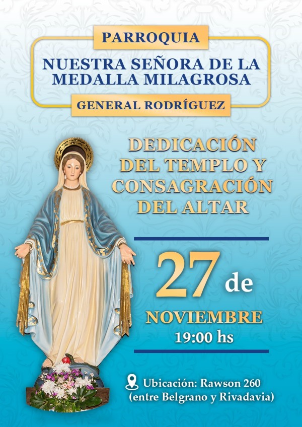 Este jueves a las 19 hs, la Parroquia Medalla Milagrosa, ubicada en la calle Rawson entre Belgrano y Rivadavia, vivirá el acto central de su historia con la solemne Dedicación del Templo y Consagración del Altar. Esta ceremonia, considerada la culminación de años de esfuerzo comunitario y construcción, contará con la presencia de obispos y sacerdotes.