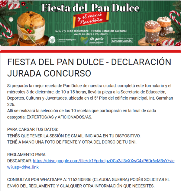 La Municipalidad de General Rodríguez puso en marcha la 1.ª edición del Concurso de "Pan Dulce Artesanal 2025". Enterate en esta nota de los requisitos que hay que cumplir para poder participar.