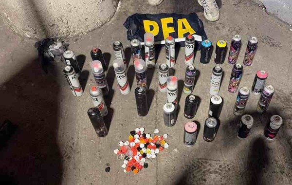 Durante la requisa de las pertenencias de los detenidos, y en presencia de testigos, se secuestró una gran cantidad de material de pintura utilizado para sus "intervenciones rápidas". Como evidencia, se incautaron 33 aerosoles de pintura de distintos colores y 40 caps (picos de aerosol).