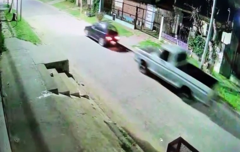 Según el registro fílmico al que pudo acceder La Posta! Noticias, no se trató de un solo delincuente, sino de al menos dos y que además se movilizaban en un segundo vehículo: alrededor de las 3:22 horas, se puede observar un auto negro y detrás la camioneta, en plena huida por una calle aledaña, una de las que desemboca en el Cementerio Municipal -indicaron las víctimas-. Lo particular es que el auto negro estaría acarreando la camioneta, pues, mirando minuciosamente, se advierte una liga enganchada al vehículo robado y no se descarta que dentro del mismo se encuentre uno de los malvivientes porque -añadieron las víctimas- "le sacaron el traba volante".