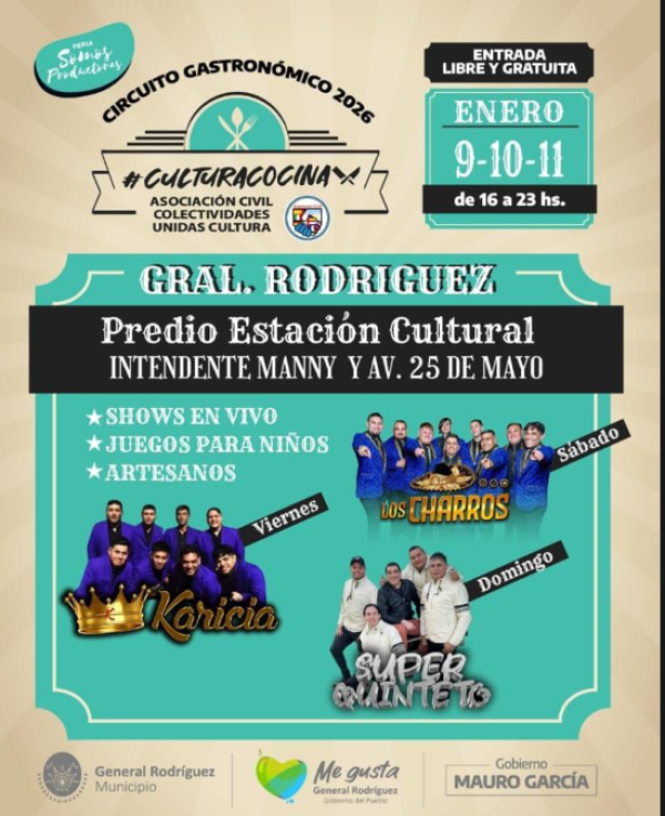 General Rodríguez: feria gastronómica con Los Charros, Karicia y Súper Quinteto