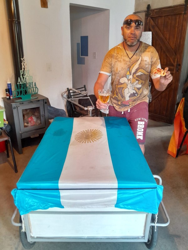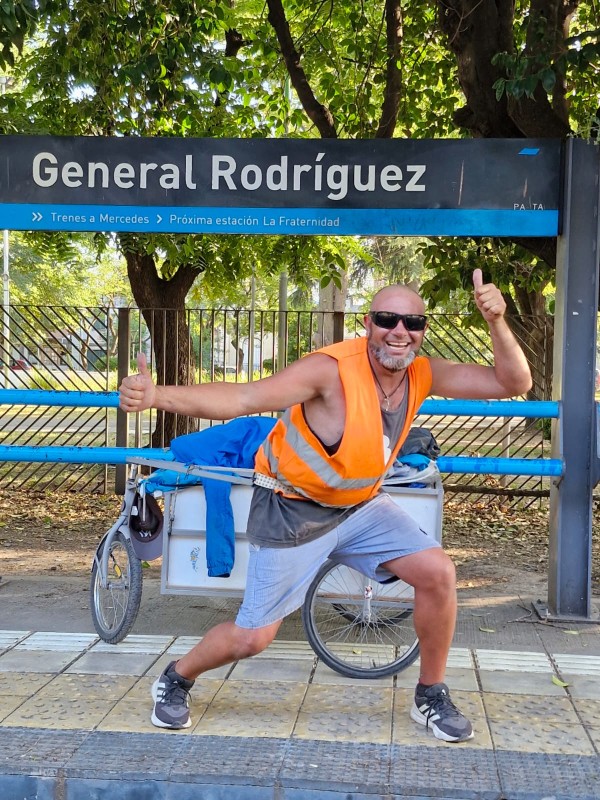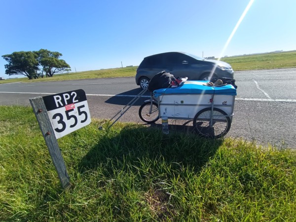 Sobre su rutina diaria, casi que una disciplina que se trazó, sostuvo que “cada día, a las 4 de la mañana me levantaba, desayunaba y desarmaba la carpa. La mayoría fue todo carpa, creo que 1, 2 días en casa de unos amigos como en Vivoratá y antes llegar a Las Armas. El tema es que acomodaba todo otra vez en el carrito y a las 5.30 esperar que sea bien de día para salir a la ruta. Siempre a contramano, chaleco reflectivo, salvo en algunas partes que había niebla y que había que salir un poquito más tarde, 6 de la mañana. Según el pueblo, había veces que se caminaba 30, 35 hasta 40 kilómetros”.