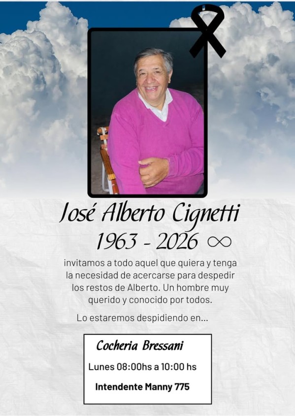 Será despedido este lunes de 8 a 10 hs en la Cochería Bressani (Intendente Manny 775), de modo que todo aquel que lo desee, podrá acercarse a darle el último adiós.