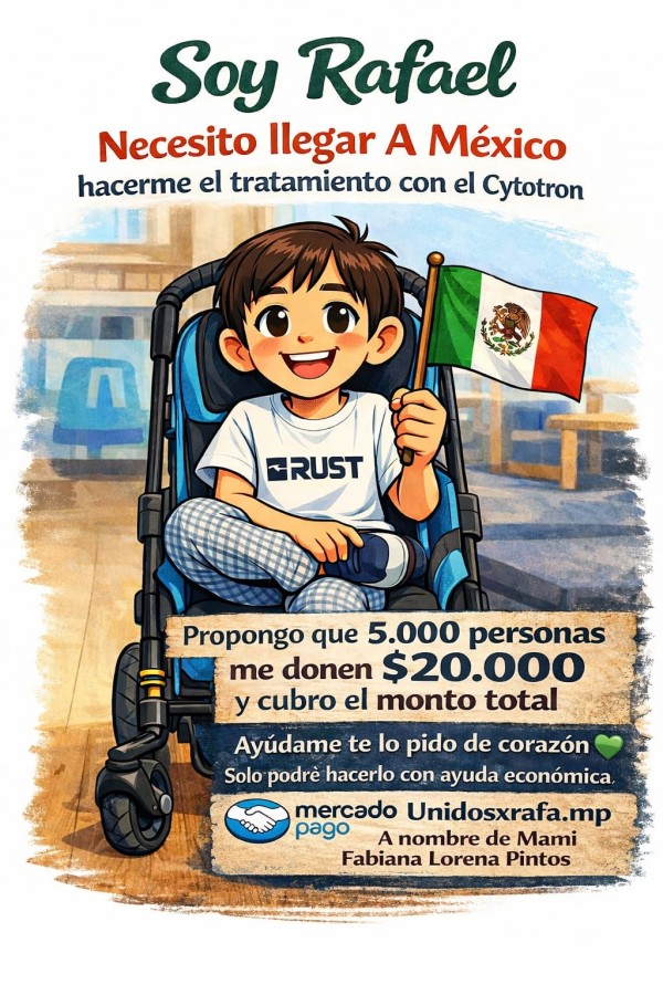 La comunidad se moviliza para que Rafa pueda acceder a una mejor calidad de vida. Para colaborar, el alias es: unidosxrafa.mp (cuenta a nombre de Fabiana Lorena Pintos); mientras que el Instagram es @UnidosXRafa.