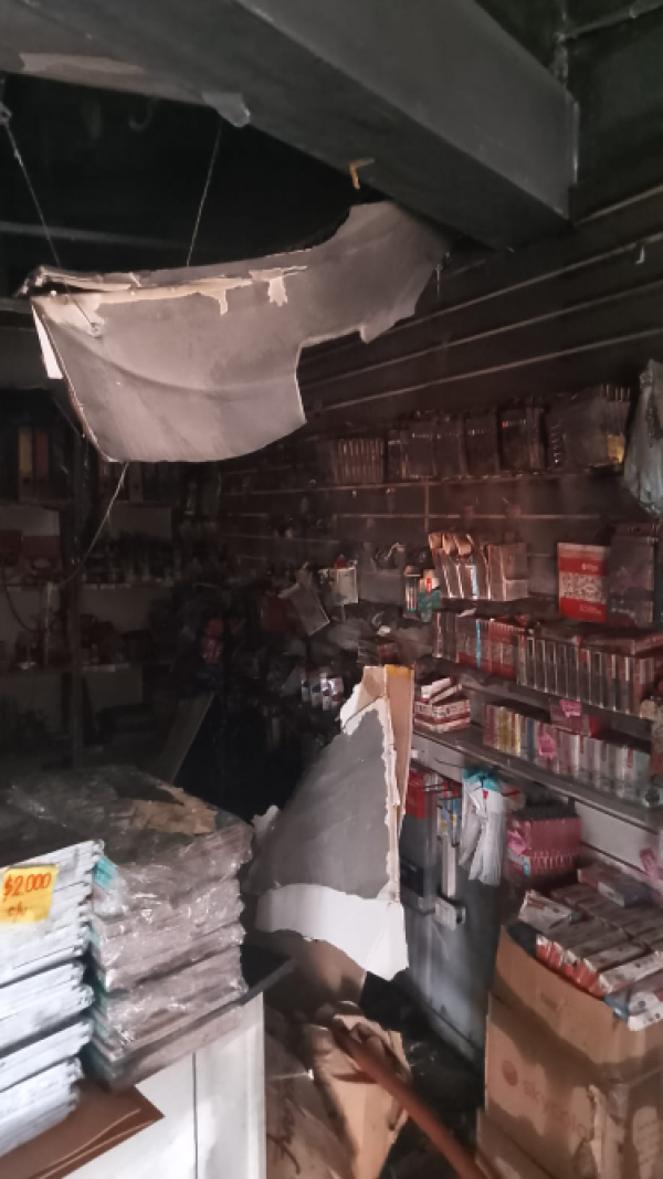 Aunque el fuego se originó en el local bailable, las consecuencias impactaron fuertemente en la librería ubicada sobre la calle Dr. Leloir. El colapso del techo y las paredes del boliche provocaron la caída de mampostería sobre el sector posterior del comercio, causando daños en la estructura y la pérdida de numerosa mercadería. Si bien las pérdidas no fueron totales, el golpe económico es severo.