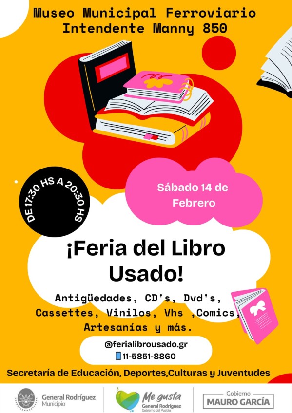 El Museo Municipal Ferroviario abrirá sus puertas para ofrecer no solo libros, sino también antigüedades, vinilos, casetes, cómics, artesanías y diversos formatos multimedia como CD's, DVD's y VHS. Esta iniciativa es impulsada por la Secretaría de Educación, Deportes, Culturas y Juventudes del Municipio de General Rodríguez.