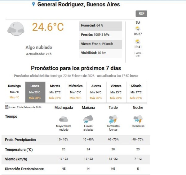 El Servicio Meteorológico Nacional emitió un alerta en las últimas horas que fue replicado por la Municipalidad de General Rodríguez por tormentas para nuestra región desde este lunes por la tarde. Recomendaciones a tener en cuenta y los detalles del clima para esta jornada