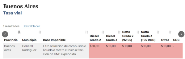 El sitio cuenta con una herramienta visual donde, al seleccionar la provincia de Buenos Aires, se despliega el listado de tasas que cobra cada comuna. En el caso de nuestro distrito, el sistema permite contrastar y denunciar cobros divididos en categorías como: