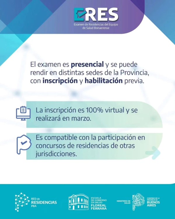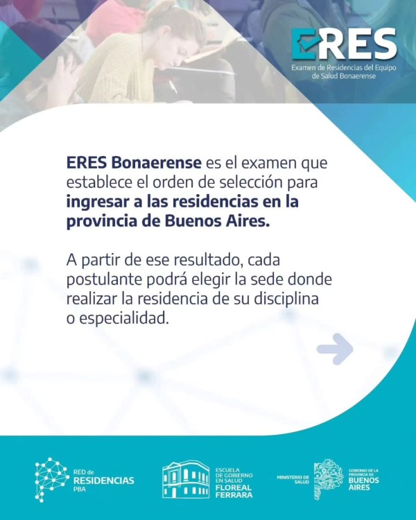 El Ministerio de Salud de la Provincia de Buenos Aires puso en marcha el proceso para el Examen de Residencias del Equipo de Salud (ERES) Bonaerense 2026, una política sanitaria diseñada para la formación integral de profesionales bajo un modelo de atención con perspectiva de derechos.