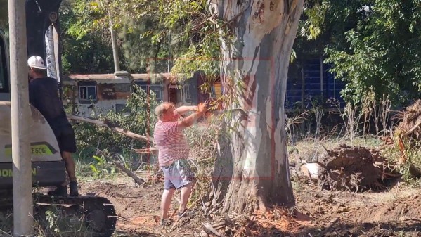Video: tala y “celebración” tras la caída de un eucalipto en el desarrollo inmobiliario de Colectora Norte y Ruta 28