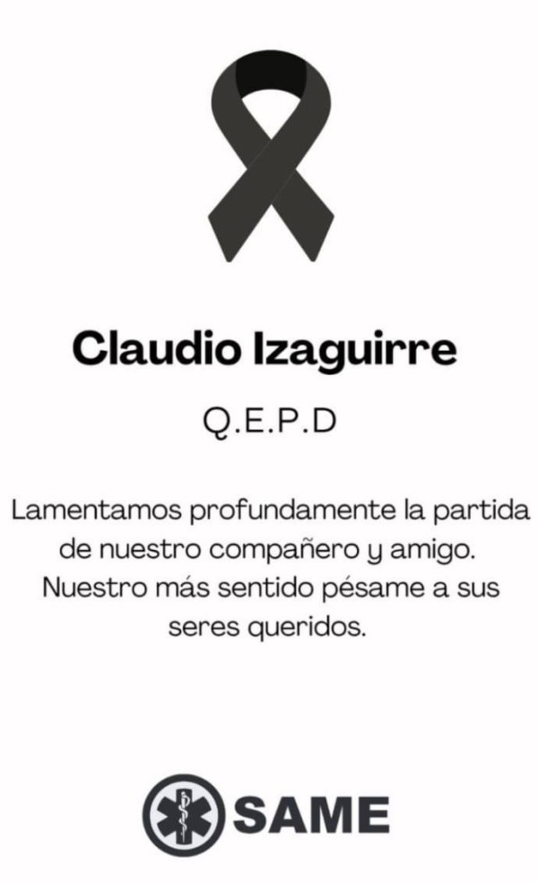 Desde el sistema de emergencias local, SAME de Gral. Rodríguez, sus excompañeros se sumaron a las condolencias: “Lamentamos profundamente la partida de nuestro compañero y amigo. Nuestro más sentido pésame a sus seres queridos”.