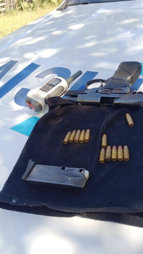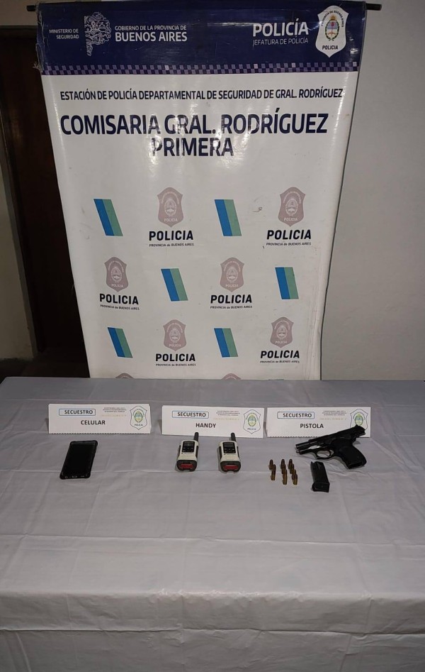 Finalmente, las autoridades lograron la aprehensión del sospechoso, un hombre de 45 años. En el lugar se incautó una pistola calibre 9 milímetros con la numeración suprimida y pedido de secuestro, además de dos dispositivos de comunicación tipo "handy", precintos y una libreta que contenía datos del otro vehículo utilizado por la banda.