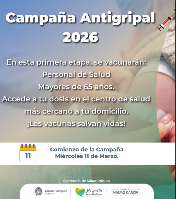 La Secretaría de Salud Pública del municipio de General Rodríguez anunció el inicio oficial de la Campaña Antigripal 2026. El operativo de inmunización comenzó el miércoles 11 de marzo, con el objetivo de reforzar la prevención antes de la llegada de las bajas temperaturas.