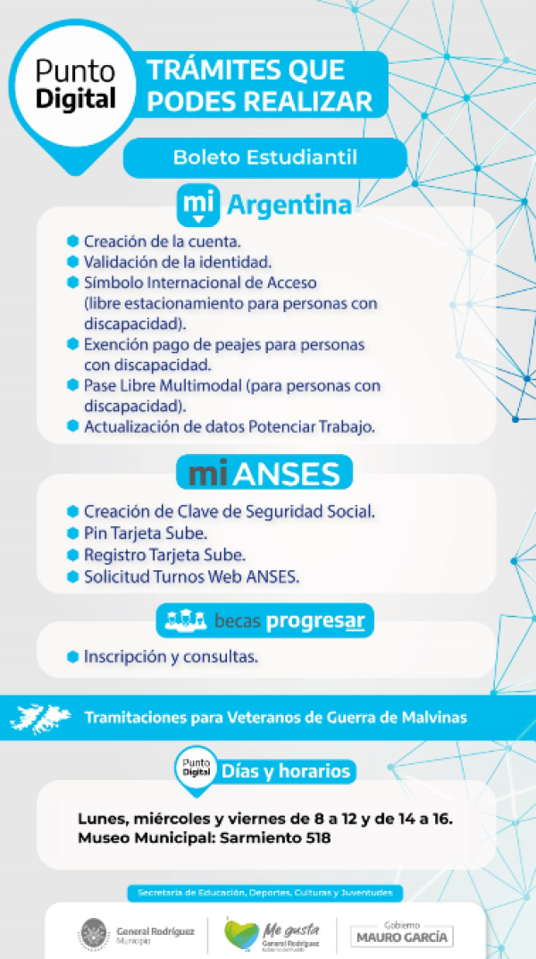 El Punto Digital centraliza su atención en el Museo Municipal (Sarmiento 518), ofreciendo una franja horaria dividida en turno mañana y tarde.