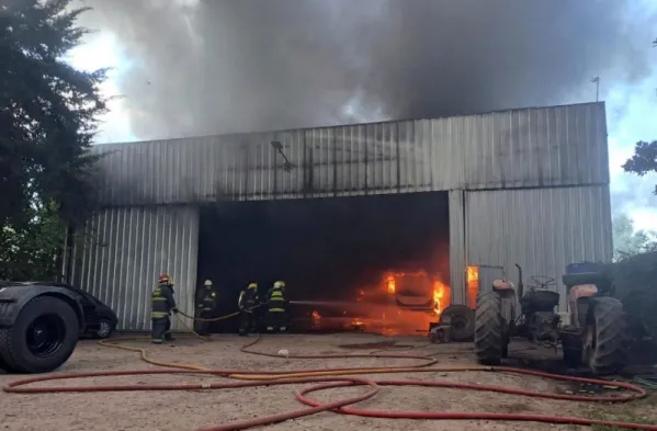 Casi en forma simultánea al automóvil que se prendió fuego, en un hecho ocurrido en el casco céntrico del distrito -reflejado por este medio- fue una tarde de lunes bastante agitada para los Bomberos, que debieron acudir con ocho dotaciones y una cuarentena de hombres ante un incendio importante en un depósito donde se soldaban y arreglaban camiones ubicado en Parque Irigoyen.