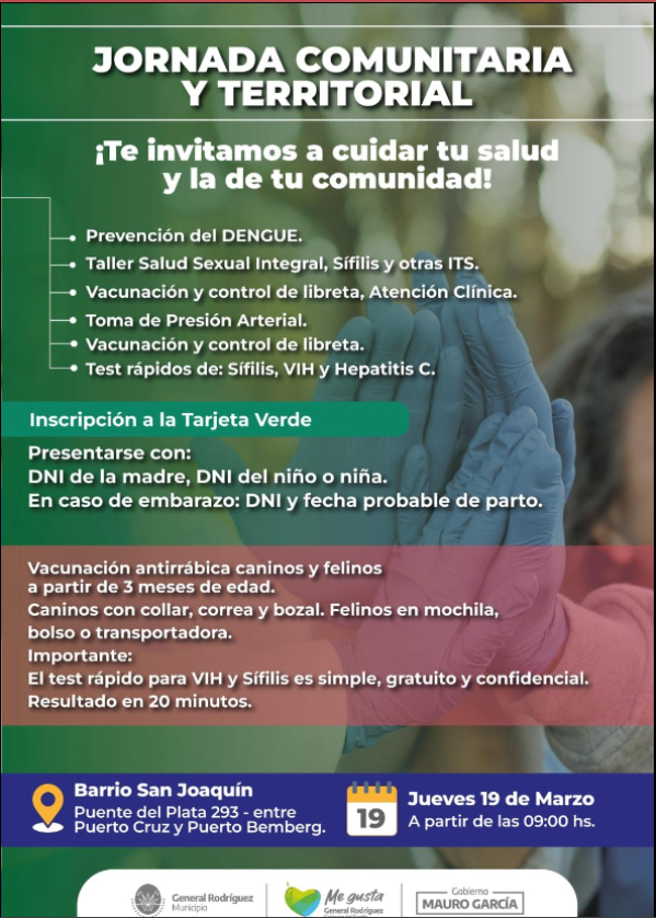 En esta oportunidad, la Jornada Comunitaria y Territorial se llevará a cabo en el Barrio San Joaquín, a partir de las 09:00 horas, en Puente del Plata 293 (entre Puerto Cruz y Puerto Bemberg), ofreciendo una amplia gama de controles de salud y trámites para toda la familia.