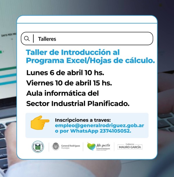 En tanto, también se realizará un Taller de Introducción a Excel y hojas de cálculo, previsto para:
