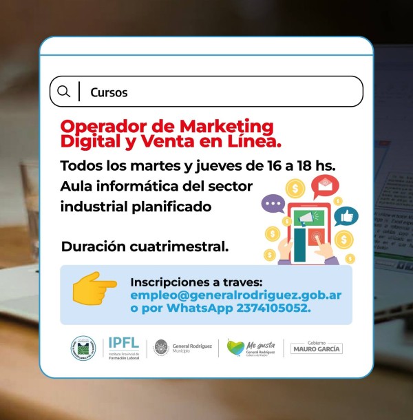 Entre las propuestas se encuentra el curso de Operador de Marketing Digital y Venta en Línea, que se dictará todos los martes y jueves de 16 a 18 horas y tendrá una duración cuatrimestral.