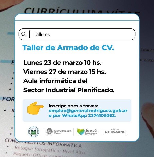 Uno de ellos será el Taller de Armado de CV, que se dictará en dos fechas: