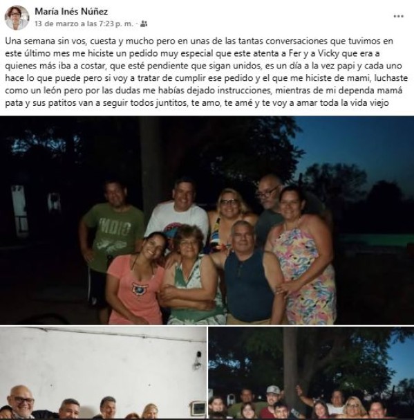 Como testimonio de su última voluntad y del amor que sembró, María Inés compartió en sus redes sociales un sentido mensaje dedicado a su padre: "Una semana sin vos, cuesta y mucho pero en unas de las tantas conversaciones que tuvimos en este último mes me hiciste un pedido muy especial, que esté atenta a Fer y a Vicky que era a quienes más iba a costar, que esté pendiente, que sigan unidos, es un día a la vez papi y cada uno hace lo que puede. Pero sí voy a tratar de cumplir ese pedido y el que me hiciste de mami, luchaste como un león pero por las dudas me habías dejado instrucciones; mientras de mí dependa, mamá pata y sus patitos van a seguir todos juntitos, te amo, te amé y te voy a amar toda la vida viejo".