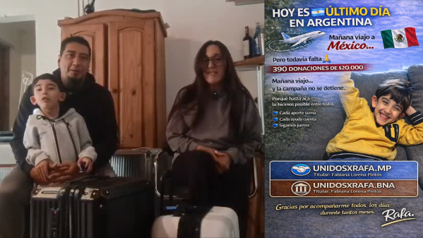 Este sábado 4 de abril marca un hito de profunda emoción para la familia de Rafael Mantenberg, el nene de 7 años oriundo del barrio Parque La Argentina. Es su último día en el país antes de partir este domingo hacia México, lo que convierte a esta jornada en la oportunidad final para realizar donaciones antes del inicio de su travesía médica. A través de un video enviado a La Posta Noticias, su mamá, Fabiana Pintos, compartió la intensidad de estas horas: “acá estamos con los últimos preparativos, la verdad todavía mucho por hacer pero no queríamos dejar pasar este videíto para agradecerles a todos y contarles que mañana ya estamos viajando a México”, expresó con gratitud hacia la comunidad que los acompañó durante meses.