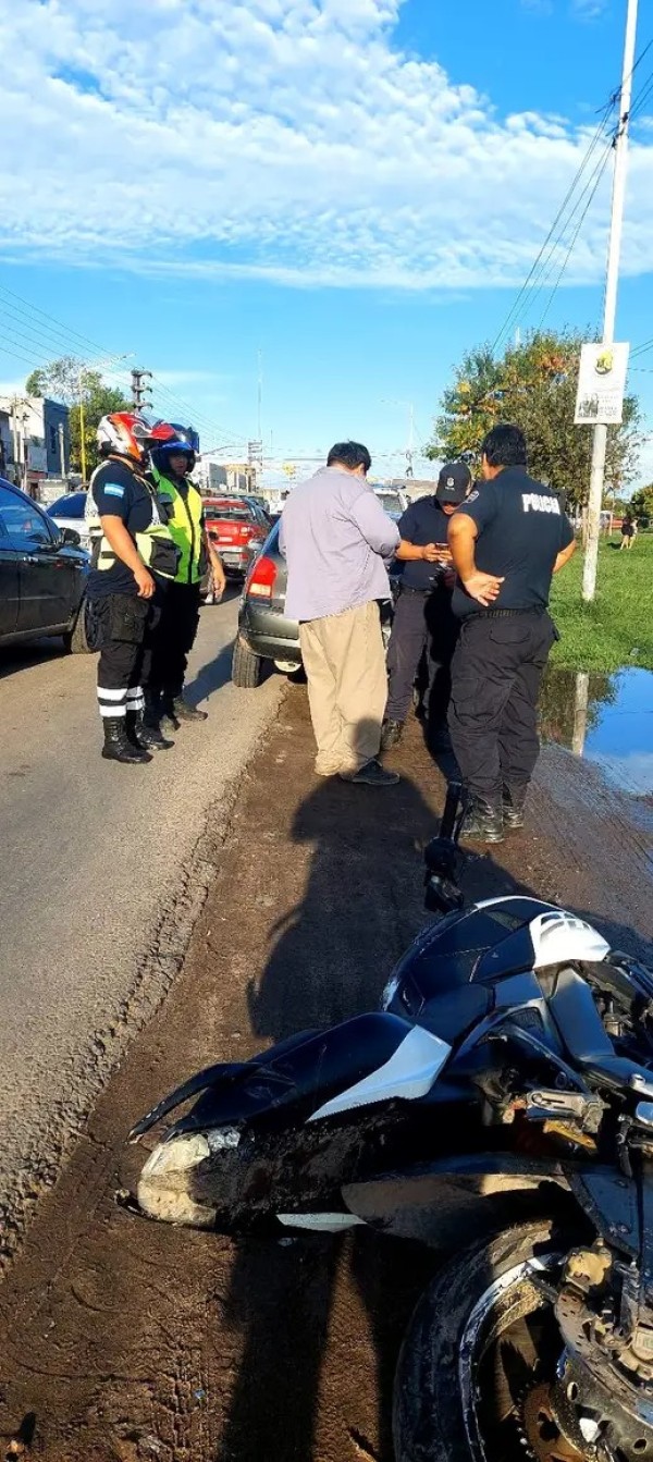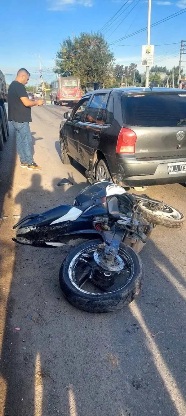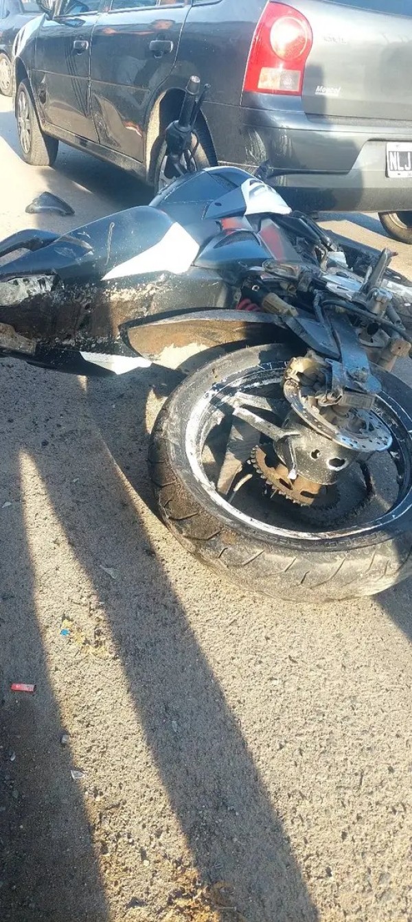 Prácticamente en la intersección de la Ruta 7 y la calle Manuel Belgrano, a la altura de los barrios Parque Rivadavia y Güemes (uno de cada lado, para tener de referencia), se registró un impactante siniestro vial que involucró a tres vehículos y dejó como saldo la destrucción total de una motocicleta.
