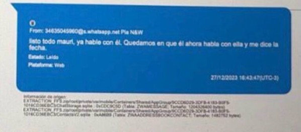 Doce minutos después, a las 16.43, Pía Novelli le envió un mensaje a su hermano: “Listo todo mauri, ya hable [sic] con él —por Rossi—. Quedamos en que él ahora habla con ella —Pettovello— y me dice la fecha”.