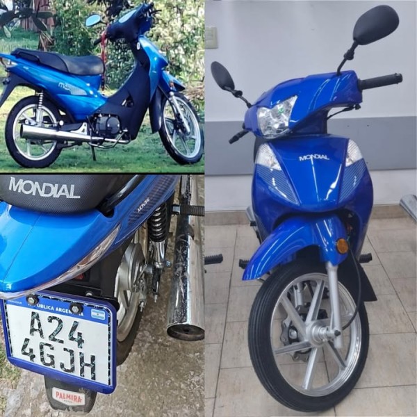 La moto robada es una Mondial LD110 de color azul, dominio A244GJH, con número de motor JL1P52FMH2412201841 y de cuadro 8CMML11A8S2142374.