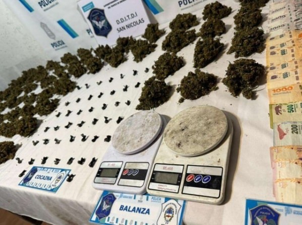 -Medio kilo de marihuana entre cogollos y dosis preparadas.