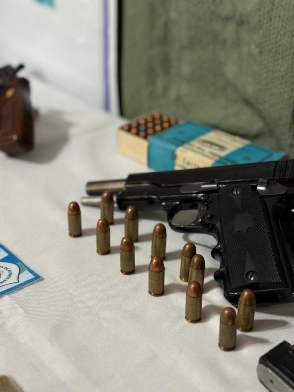 -Armas de guerra, incluyendo una pistola calibre 45 y un revólver 38.